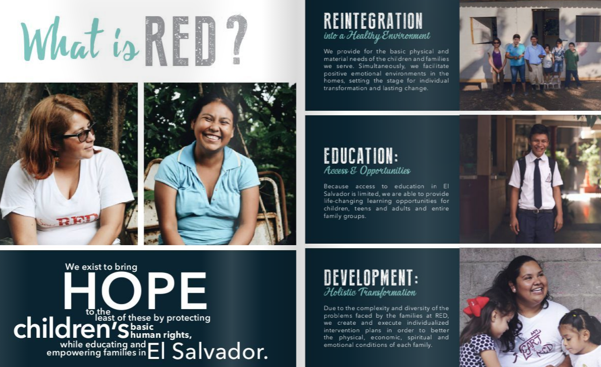 Project RED is a community, working in partnership with the Salvadoran government to bring lasting change to forgotten El Salvadoran families in need through actions of Reintegration, Education Development. Project RED believes that in order to break the cycle of poverty and brokenness, they must not only work with but the entire family. This can only be accomplished by educating and empowering each family member through personal relationships.