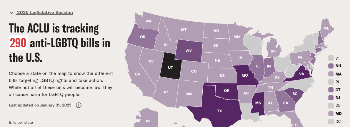 Over the past five years, the United States has seen a troubling rise in anti-trans, anti-immigrant, anti-diversity, and anti-queer legislation. Thousands of discriminatory bills have been introduced nationwide, with hundreds being passed, particularly in states like Florida and Texas, which are among the least safe for marginalized communities. Unfortunately, this trend extends beyond U.S. borders, as countries like the UK and Canada are scaling back LGBTQ protections amidst a resurgence of regressive and fascist ideologies.